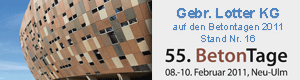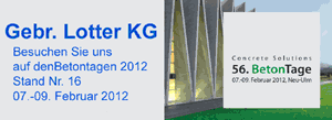 24.-26.02.2014 Auch 2015 waren wir wieder als Aussteller auf den Betontagen in Ulm vertreten, um unser Leistungsspektrum zu präsentieren. Schwerpunkte in diesem Jahr waren neben unserem Lotter-Roth-Thermosystem unsere Geothermiepfähle, die BAMTEC-Rollmatten sowie weitere Produkte unserer Schweisstechnik.